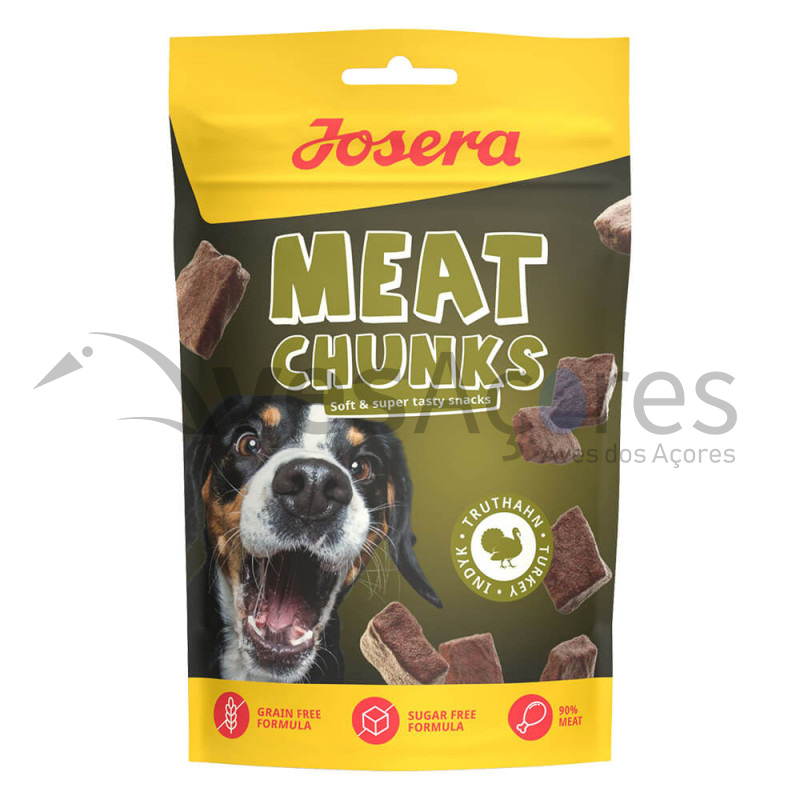 Os snacks Josera Chunks são macios e ligeiramente secos, ideais para oferecer como lanche ou recompensa aos cães.